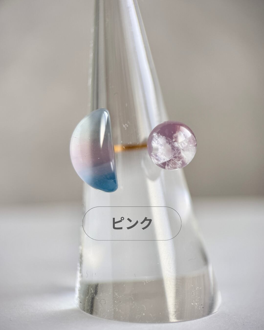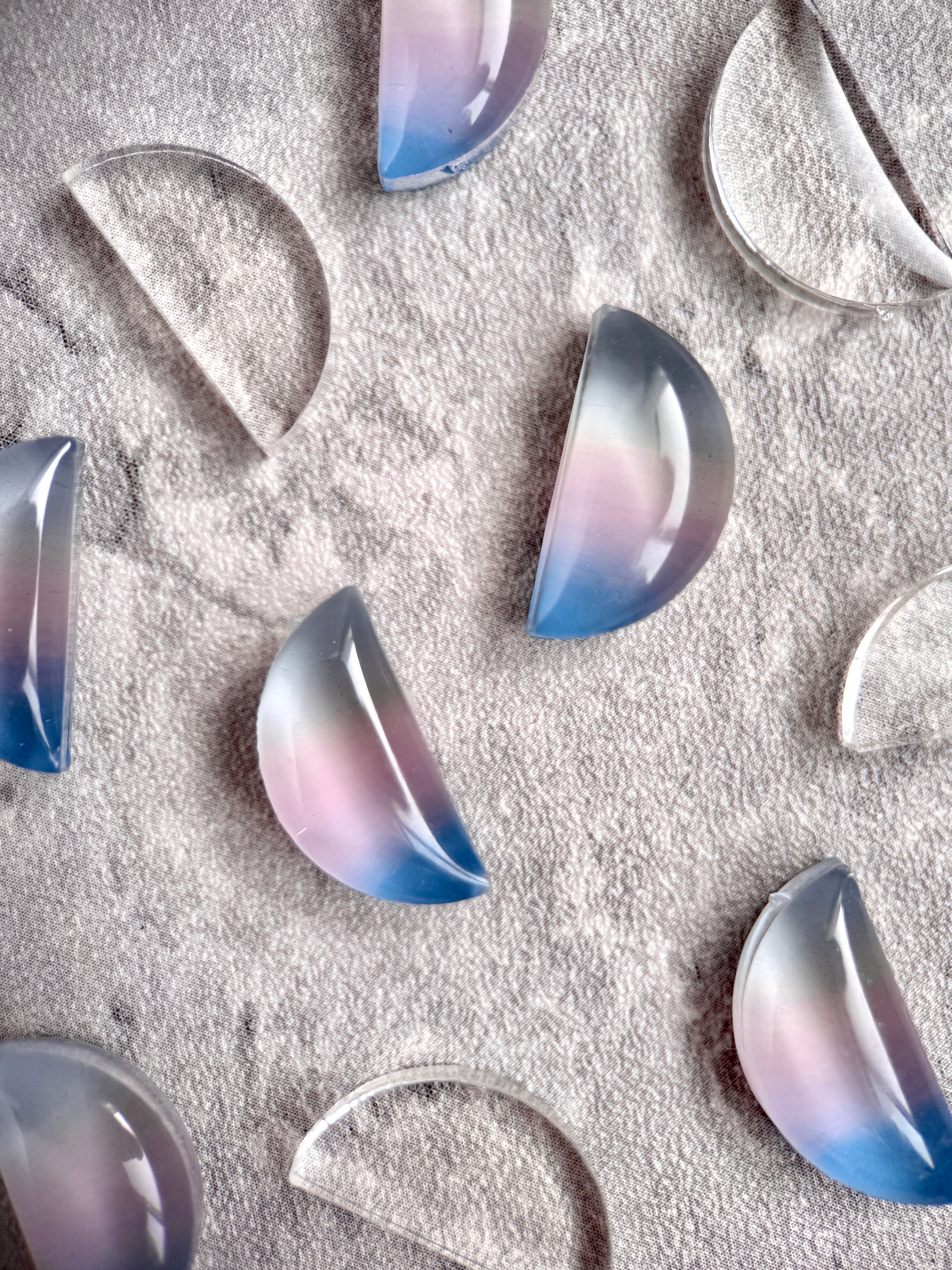 満月モチーフ:レジン・ピンク(ラベンダーアメジスト)・ブルー(アクアマリン)