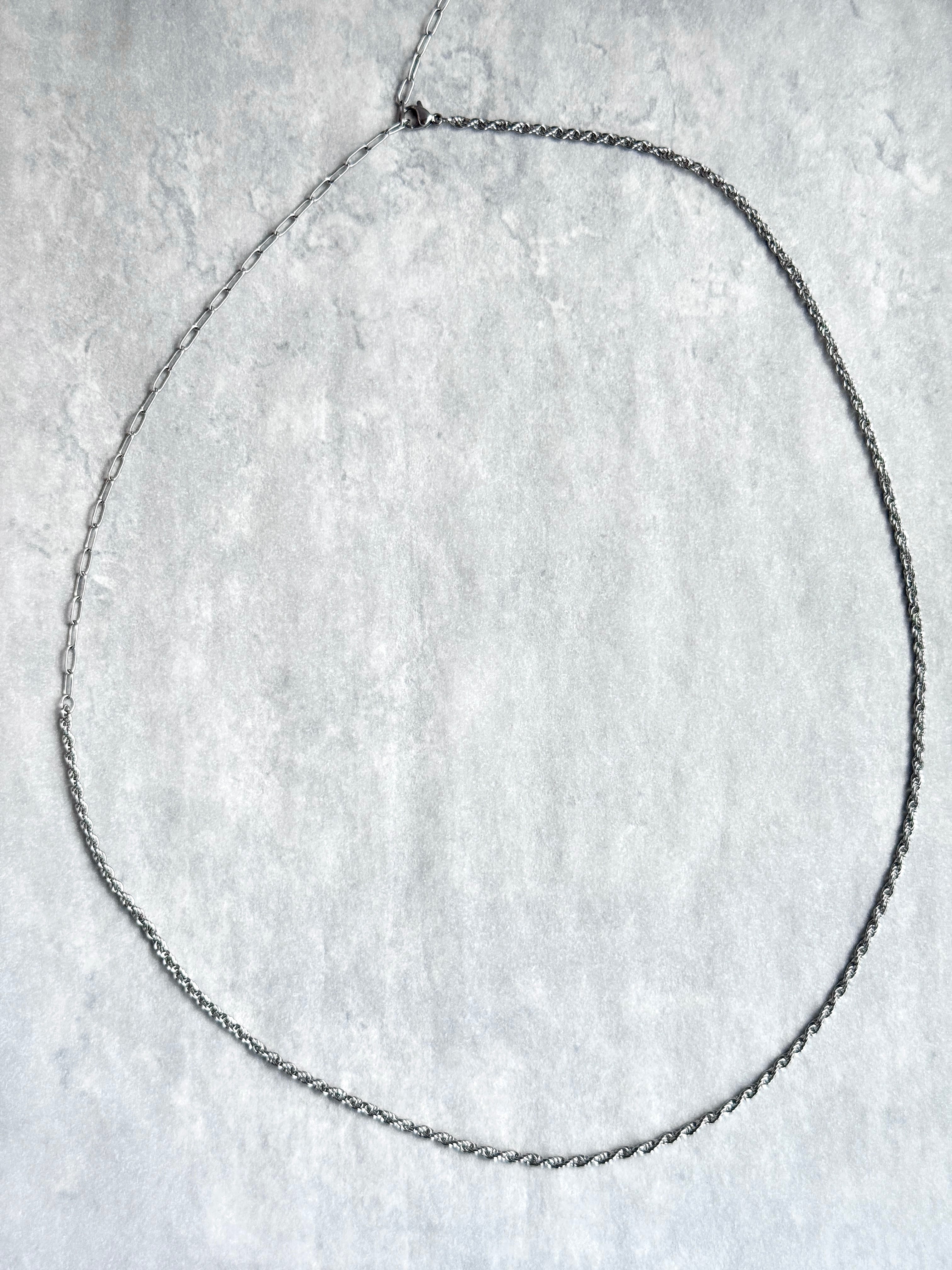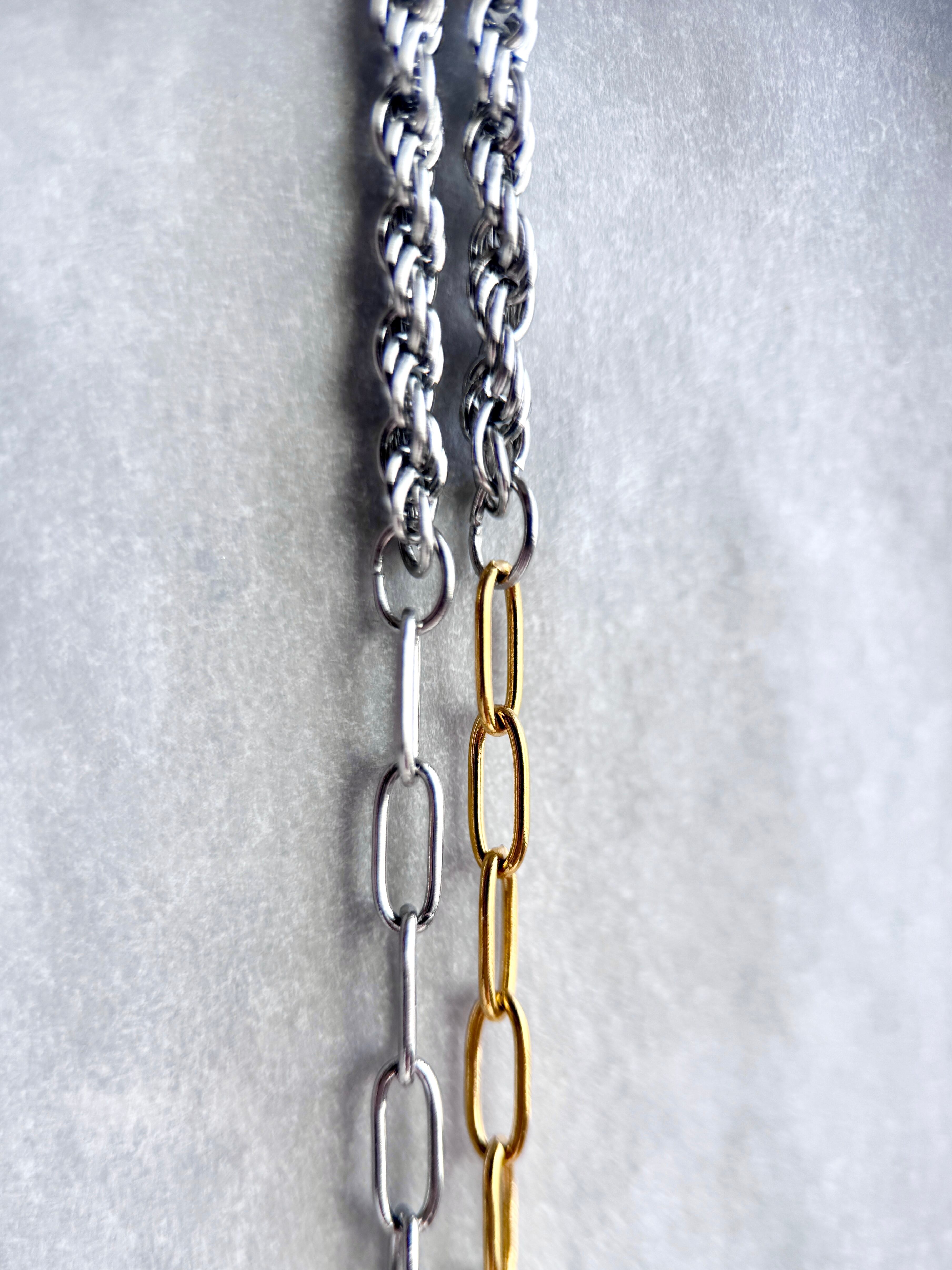 異なる形のチェーンを組み合わせたネックレスは、