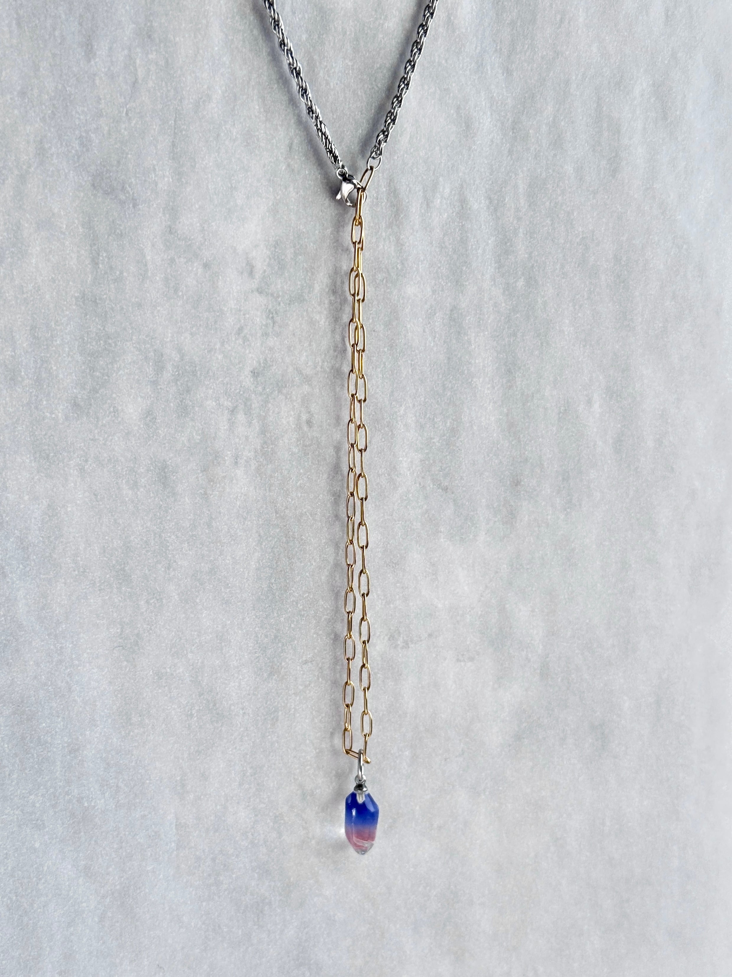 異なる形のチェーンを組み合わせたネックレスは、